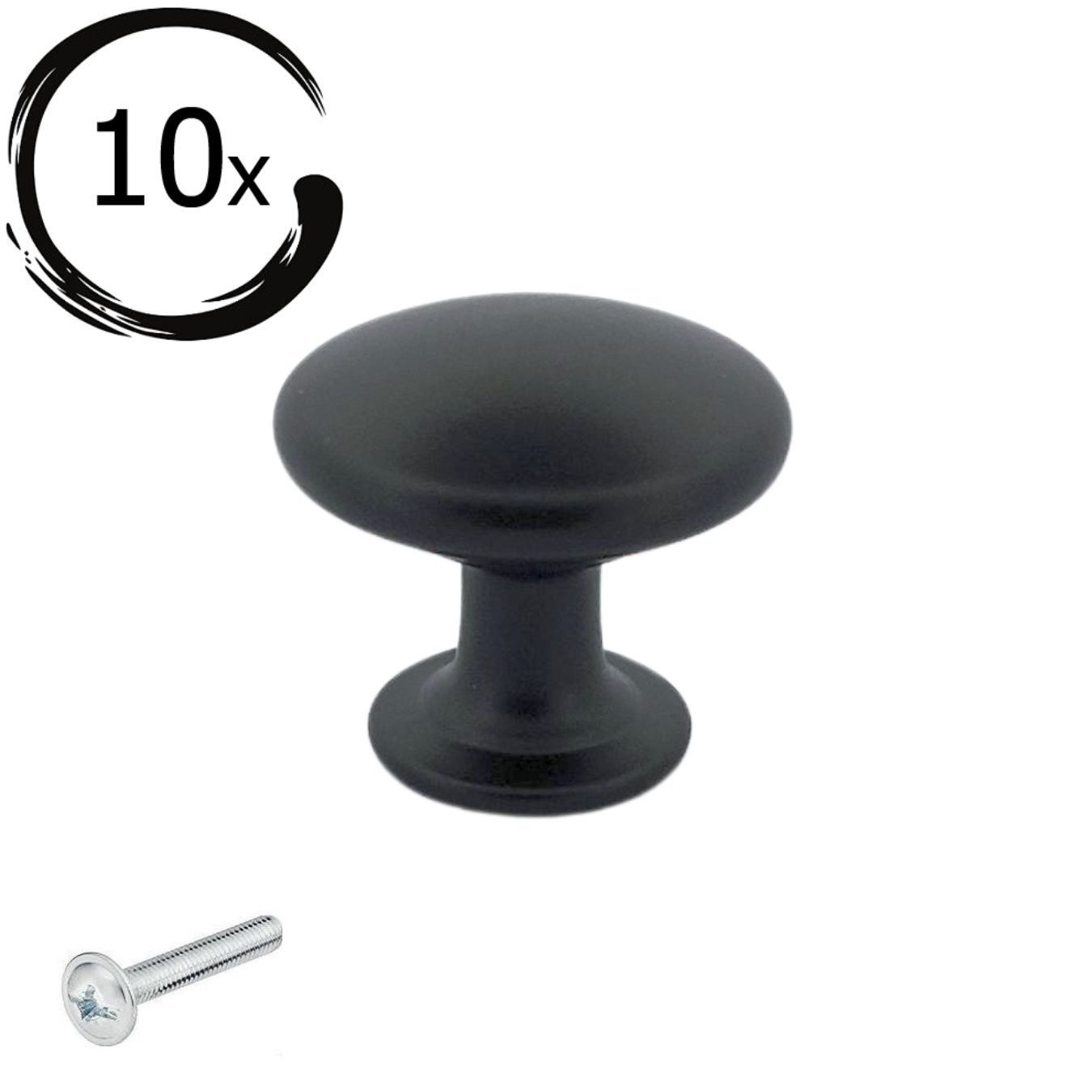 10er-Set Schrankknöpfe / Möbelknöpfe Macon 27 mm Aluminium Schwarz