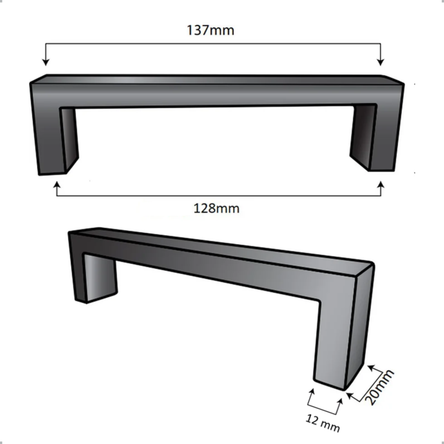 De boorafstand van de handgreep is 128 mm.