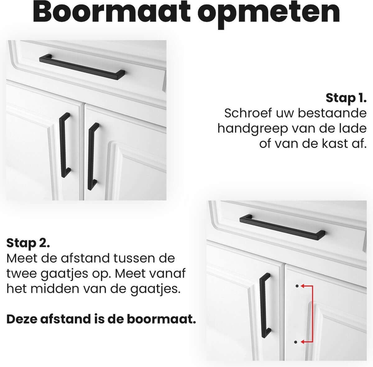 The distance between the holes on your drawer or door is also called the drilling distance (Distance between the holes measured from the center of the hole)