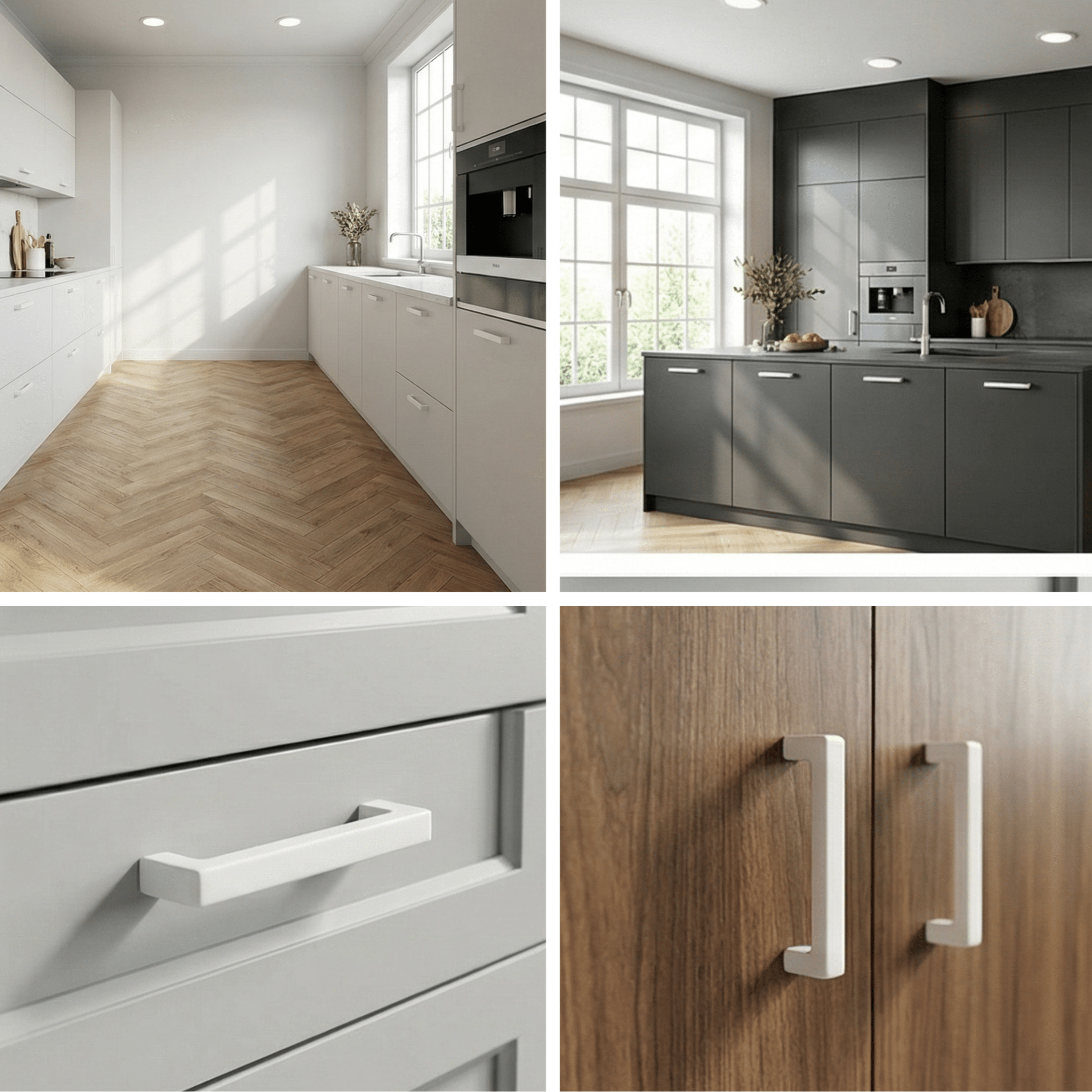 Kies bij handgrepen eerst de juiste boormaat (hart-op-hart) zodat u bestaande gaten kunt hergebruiken. Let daarna op de totale lengte en de vorm, zodat de greep mooi in verhouding is met uw fronten. Voor de finish adviseren wij om aan te sluiten op uw keukenapparatuur, kraanwerk en scharnieren: mat zwart oogt modern en strak, RVS(look) is tijdloos, goud en brons geven een warm luxe accent en wit zorgt voor een rustige, frisse uitstraling. In vochtige ruimtes is mild reinigen en goed drogen aan te raden om de afwerking mooi te houden.