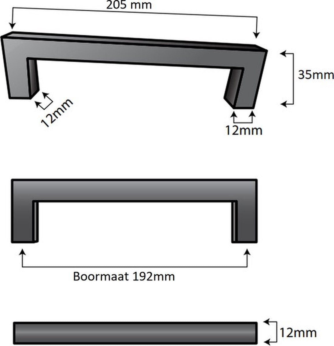 De boorafstand van deze greep is 192 mm.
